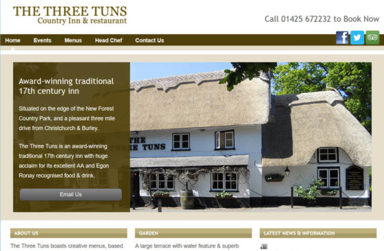 A 6 page mobile friendly website for the Award-winning traditional 17th century inn Three Tuns Inn Bransgore.